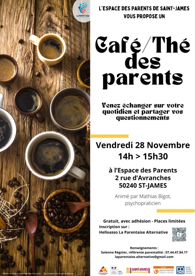 Vendredi 28 NOVEMBRE 2025 14h / 15h30 Espace des Parents de St-James. Venez échanger sur votre quotidien et partager vos questionnements de parents ! Atelier animé par Mathias Bigot, psychopraticien. Garde d’enfants possible sur place (places limitées).